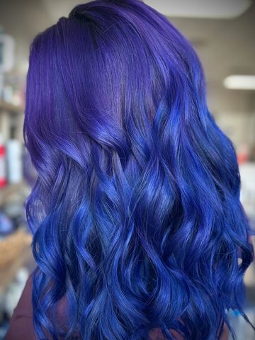 A custom vivid color service designed for a bold, all-over fantasy shade. Perfect for someone ready to make a statement! Includes pre-lightening, a chromatic color, haircut or trim, blow dry, and style. Deposit required.