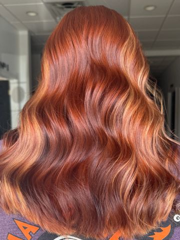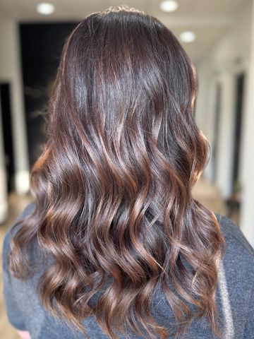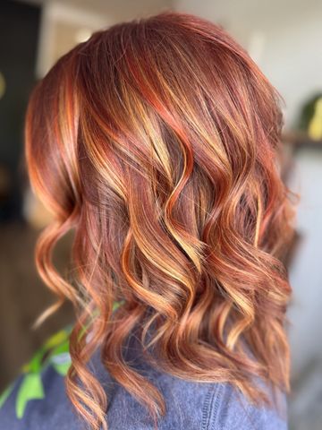 A customized color tailored with a blend of highlights, lowlights, balayage, or other technique for seamless, all-over dimension.